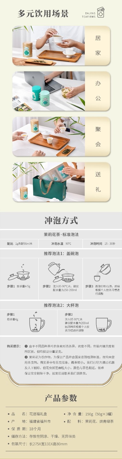福州市 闽榕茉莉花茶花送福·综合礼盒 150g/盒(1号2号3号50g各1)