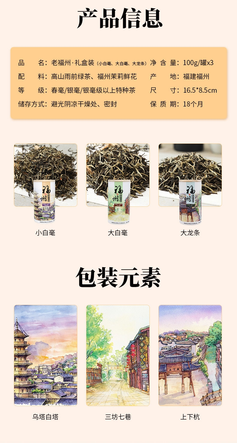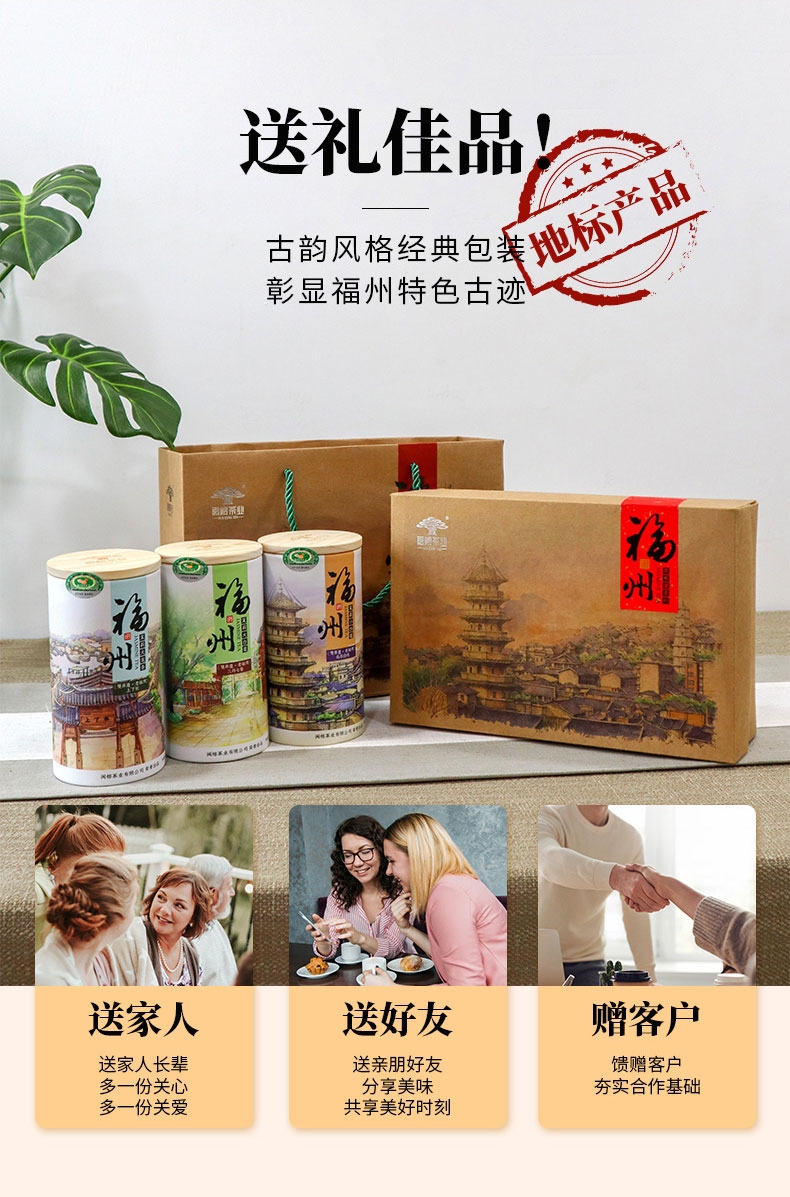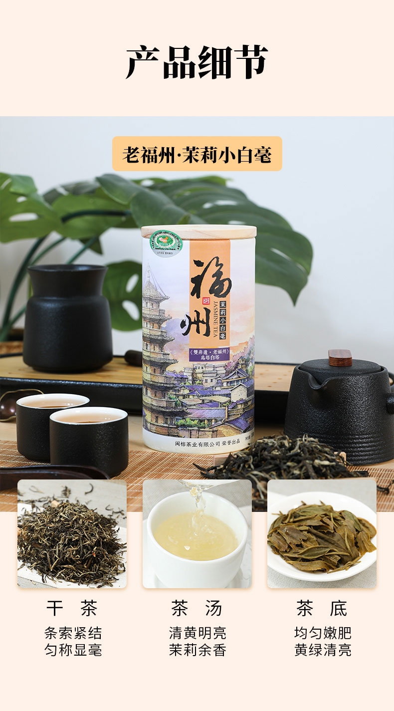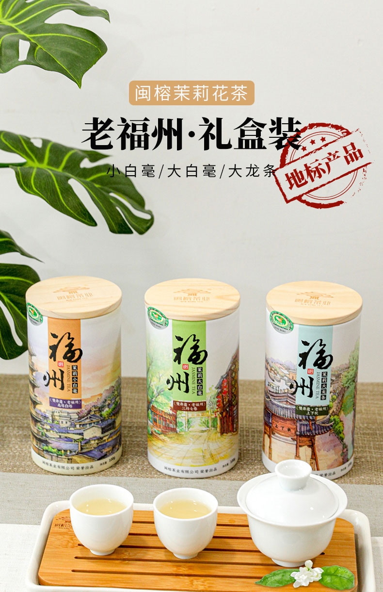 福州市 闽榕茉莉花茶小白毫/大白毫 大龙条组合纸盒 300g/盒
