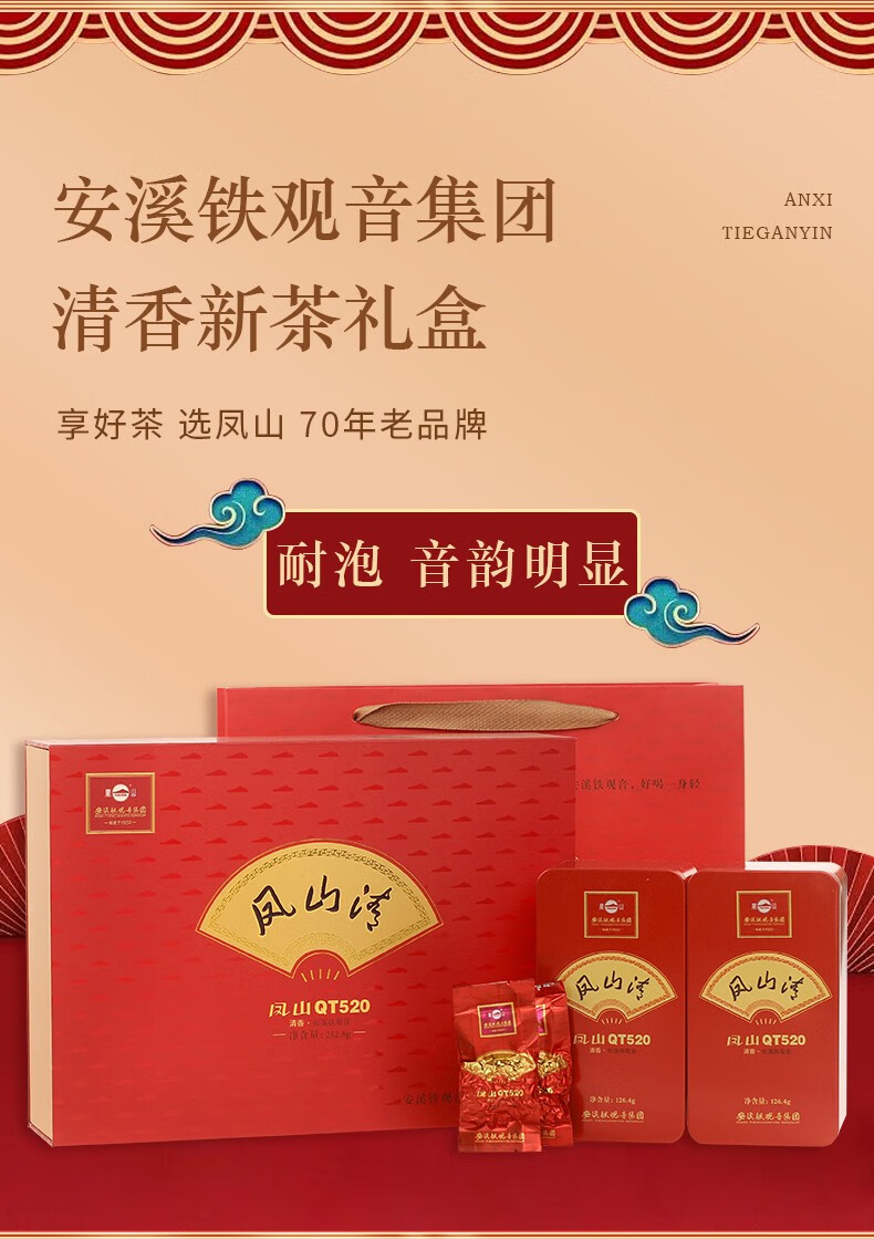 安溪县 凤山铁观音集团清香型正味兰花香新茶QT520礼盒装乌龙茶2024春茶 礼盒装 252g