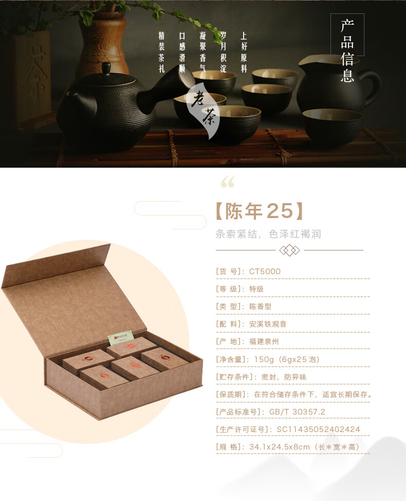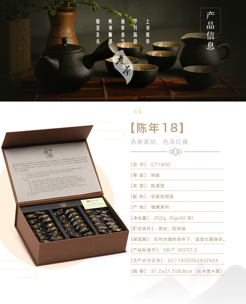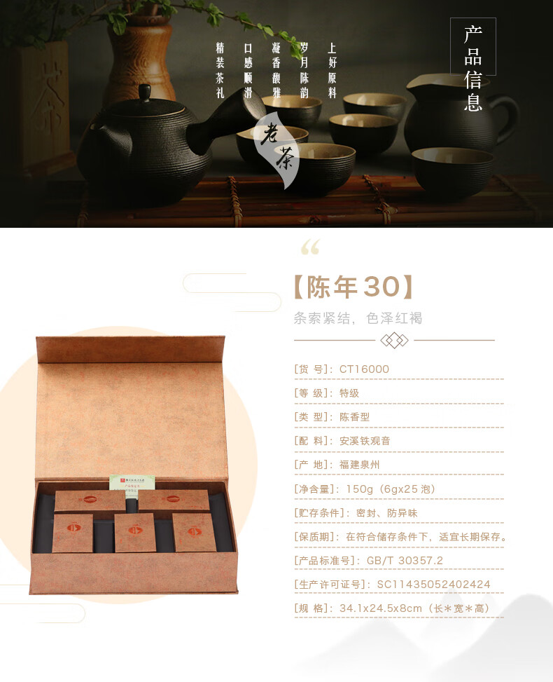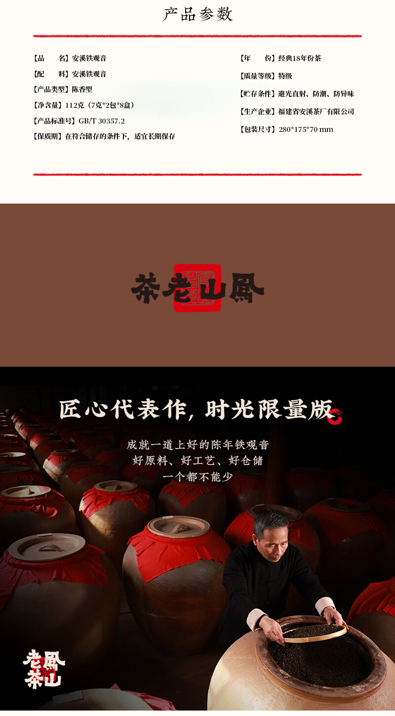 安溪县 凤山陈年铁观音特级安溪陈18年25年30年老铁乌龙茶礼盒装经典年份茶送C1800陈18年252g