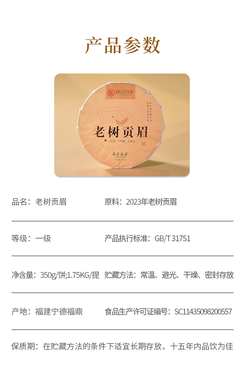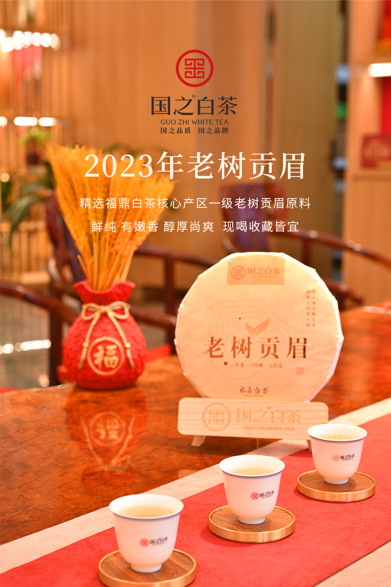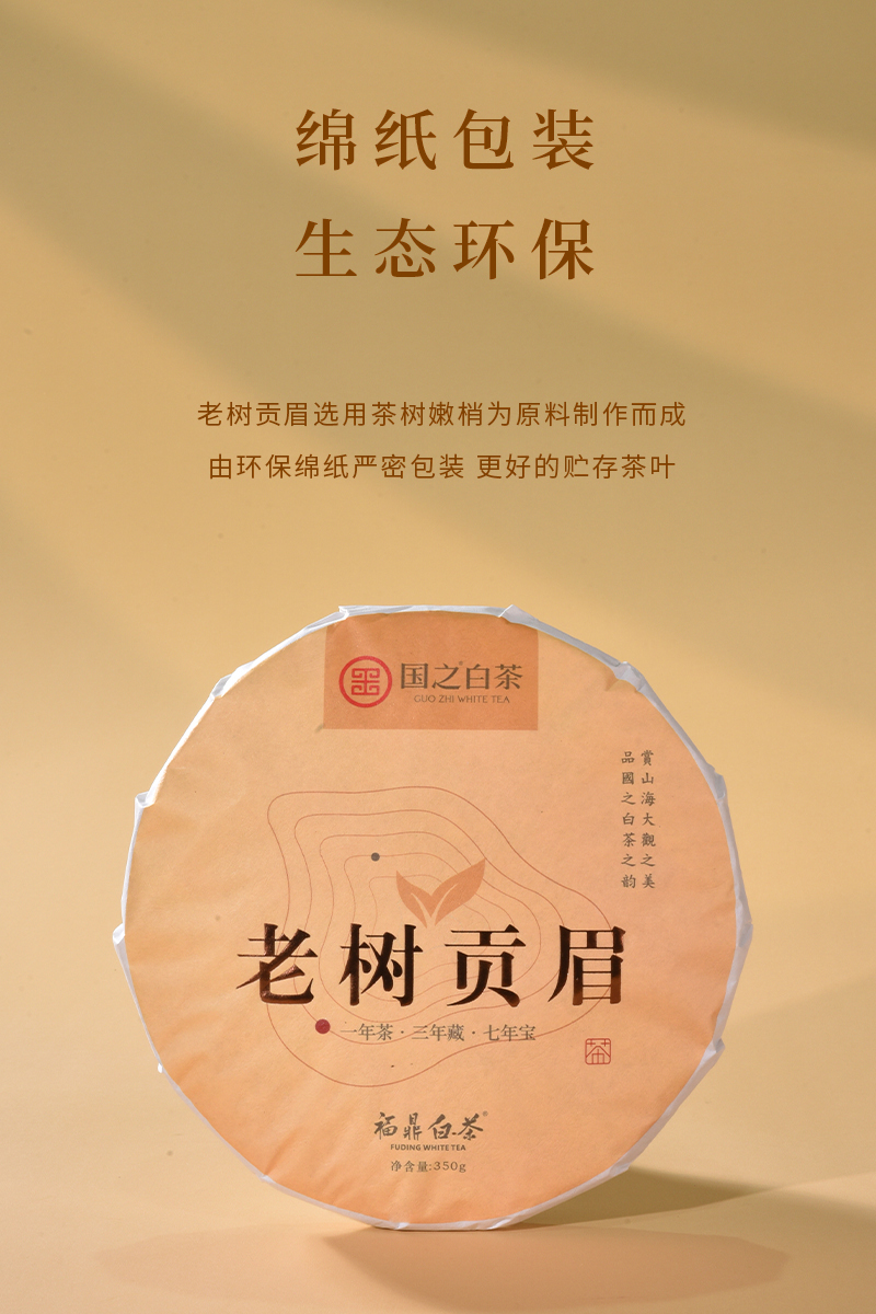 福鼎市 国之白茶老树贡眉2023年一级贡眉福鼎白茶饼350克